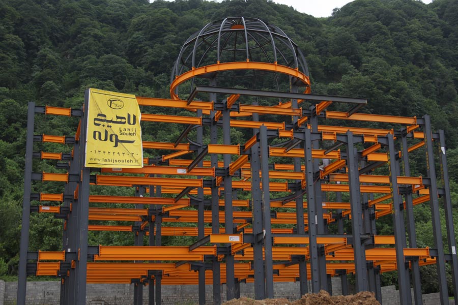 أُنجز مشروع قاعة ناسيونال لاهيجان عام 1395 هـ.ش بالتعاون المباشر مع شركة لاهيچ سوله، بهدف تنفيذ هيكل فولاذي بالكامل بنظام البراغي والمسامير.