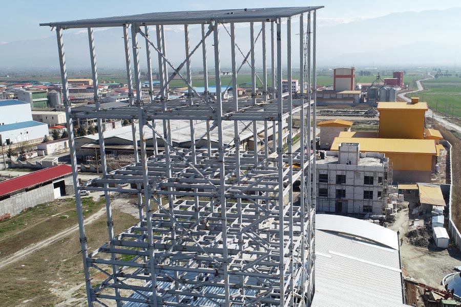يُعدّ مشروع «برج الدانة» التابع لشركة «دام وطیور كوروش» في مدينة گرغان نموذجاً ناجحاً للتعاون المثمر بين شركة لاهيج سوله والعلامة التجارية المرموقة «گلرنگ».هذا الهيكل الصناعي الذي يبلغ وزنه الإجمالي 300 طن صُمّم ونُفّذ لدعم عمليات إنتاج وتخزين الحبوب، حيث تم تنفيذ مراحل التصنيع والنقل والتركيب بدقة هندسية عالية وباستخدام مواد أولية عالية الجودة، مما جعل برج الدانة يتبوأ مكانة رفيعة من حيث المتانة والكفاءة والسلامة وفقاً لأعلى المعايير الصناعية. ويمثل هذا المشروع تجسيداً للتكامل بين الخبرة التقنية لشركة لاهيج سوله وقوة وسمعة علامة «گلرنگ»، ليشكّل معاً خطوة متميزة في تطوير البنى التحتية لقطاع تربية المواشي والدواجن في البلاد.